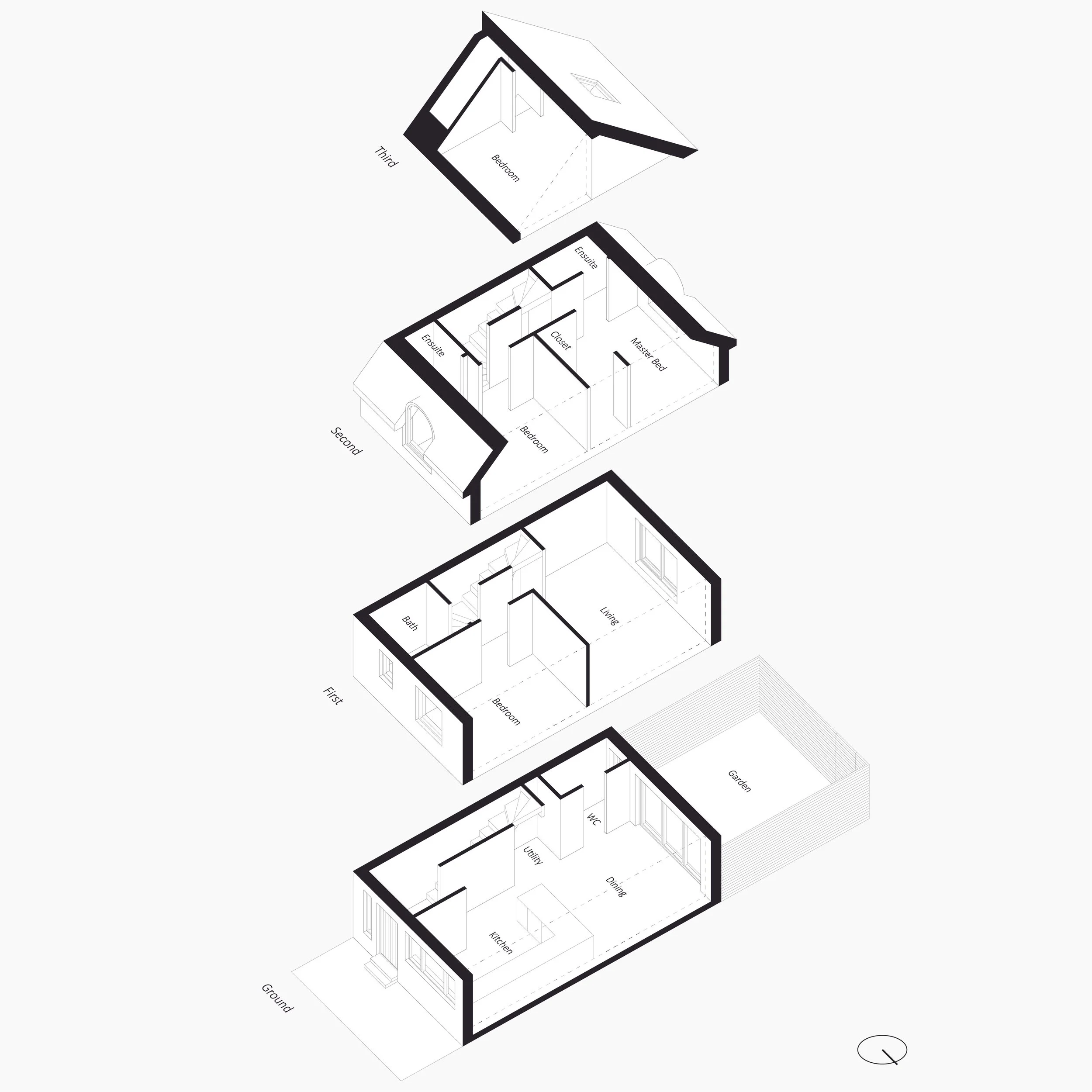 Tasked with transforming a narrow, four-storey home previously fragmented into small and inefficient rooms, Architects in Practice began by stripping the interior back to its essentials. Working carefully around the existing stair and primary structural elements, a new spatial hierarchy was established — one that brings light, generosity and coherence to the vertical plan.